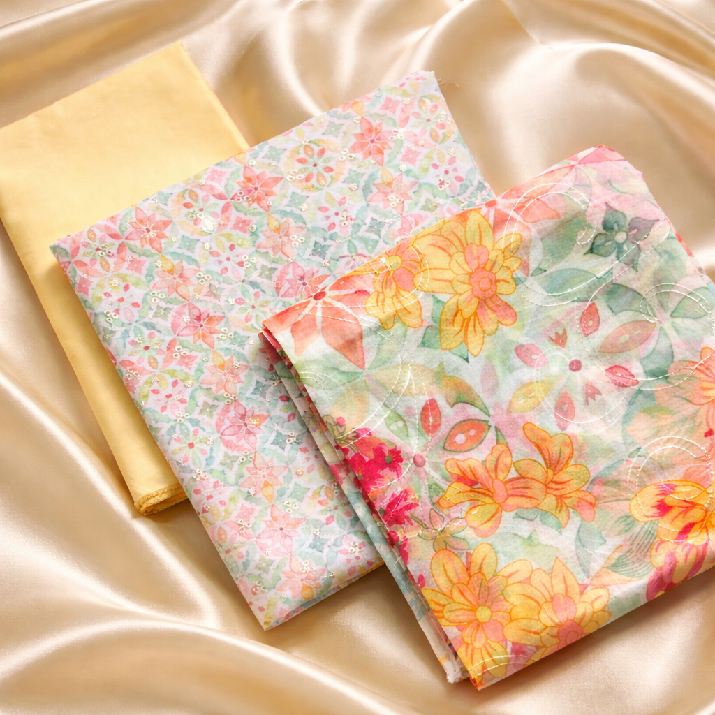Add freshness and elegance to your wardrobe with this beautiful colorful cotton 3 piece unstitched set designed for women who love comfort with style. Made from soft breathable cotton fabric, this outfit ensures all-day comfort while maintaining a graceful and vibrant look.